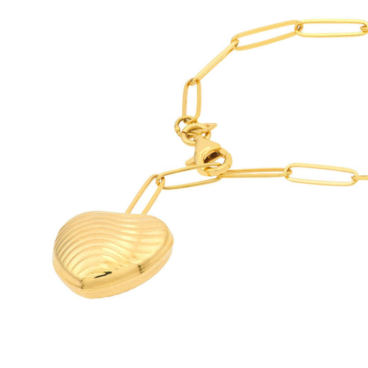 14k Textured Puff Heart Paperclip Lariat Necklace