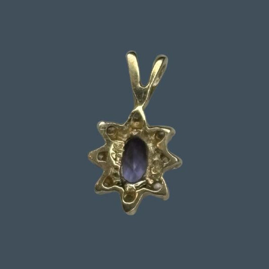 14k Yellow Gold Diamond and Tanzanite Pendant